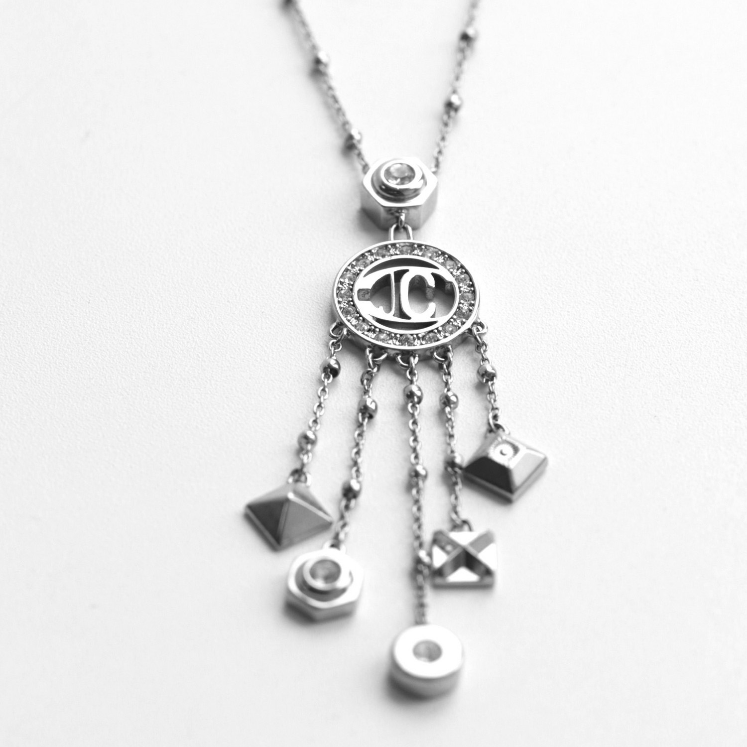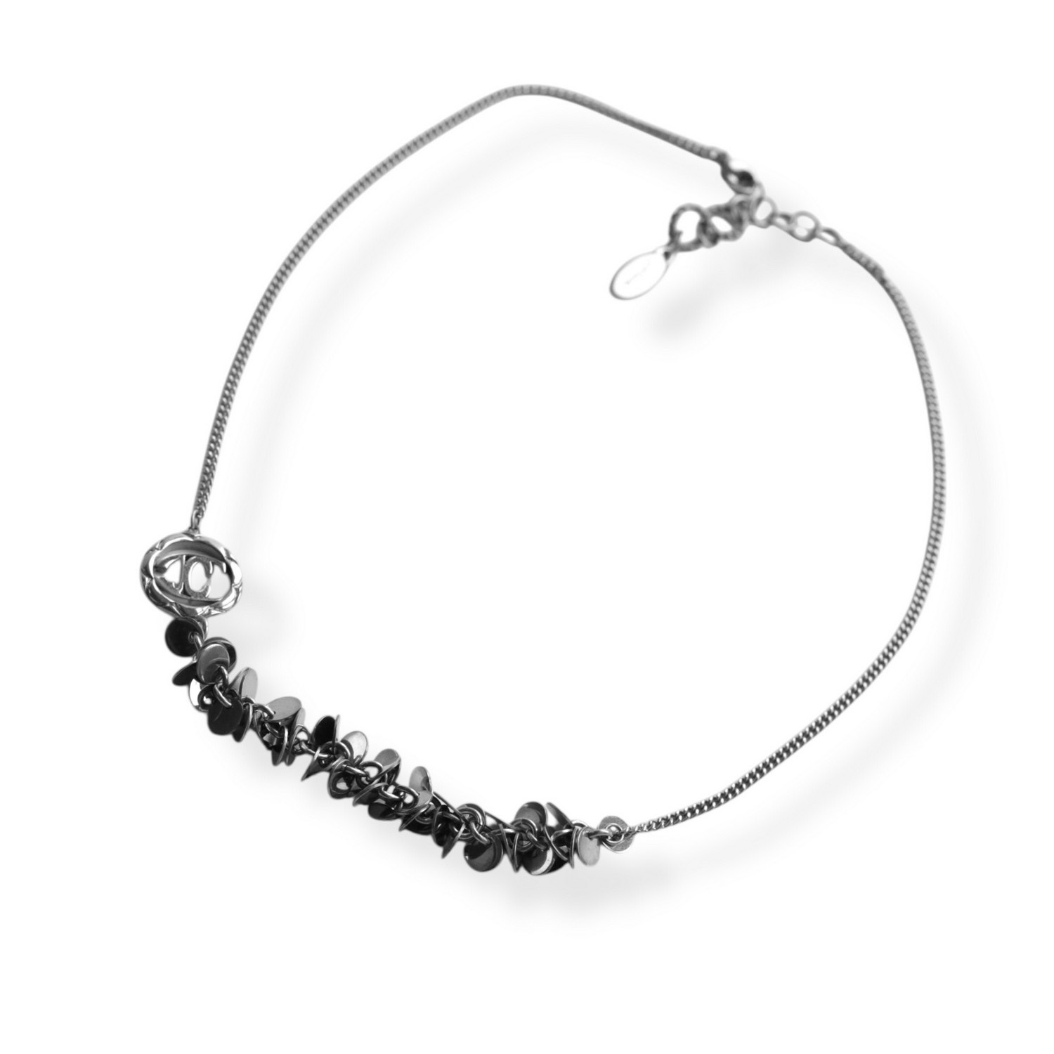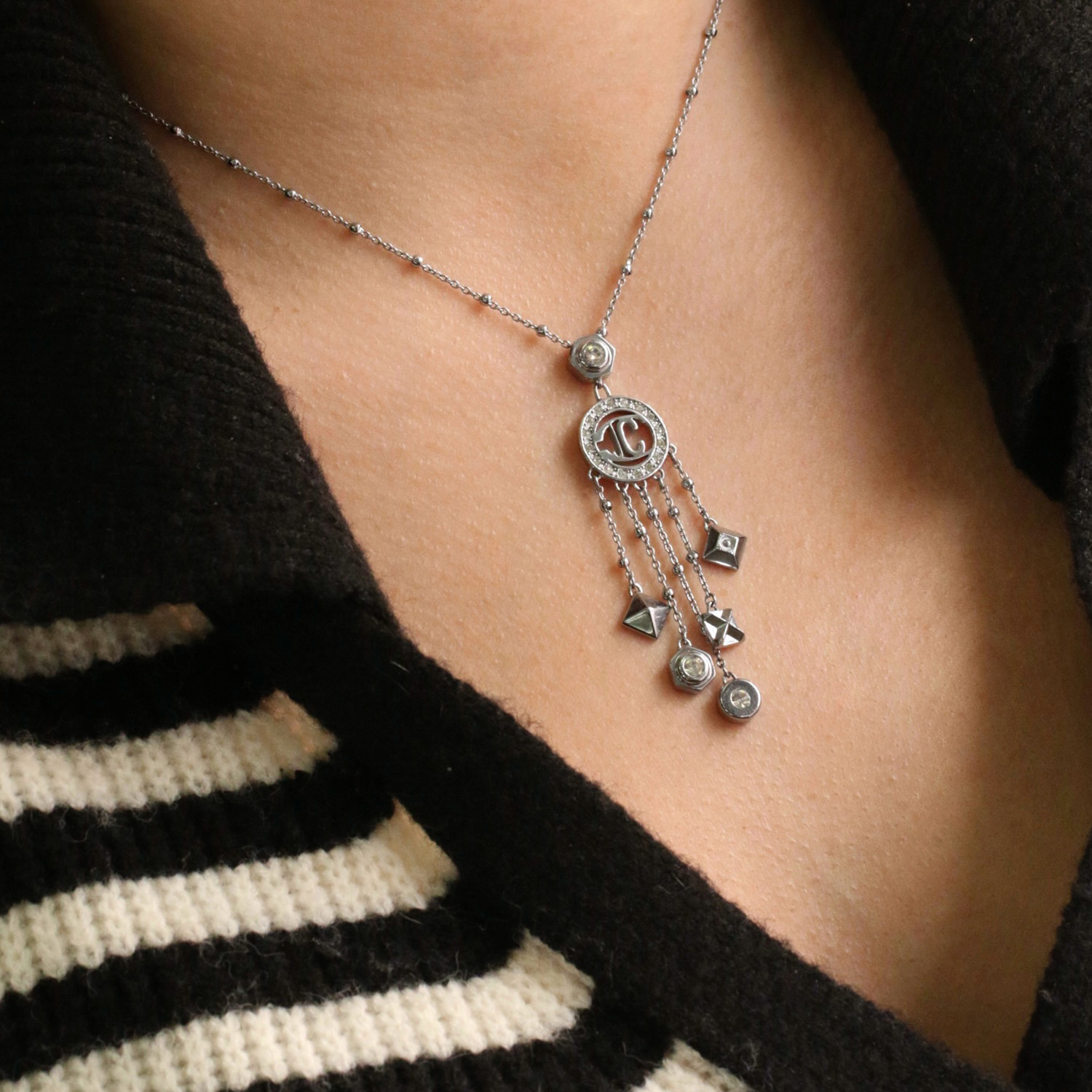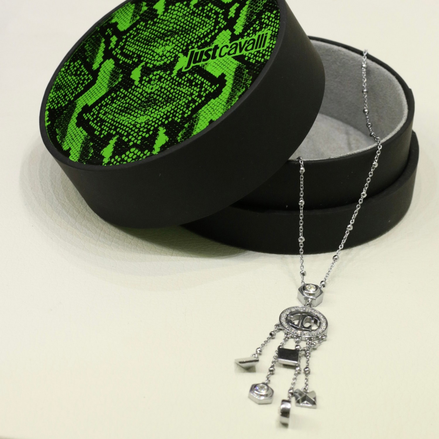 Колье Just Cavalli из стали покрытой родием, украшено цирконами. Длина регулируется от 41 до 45 см.