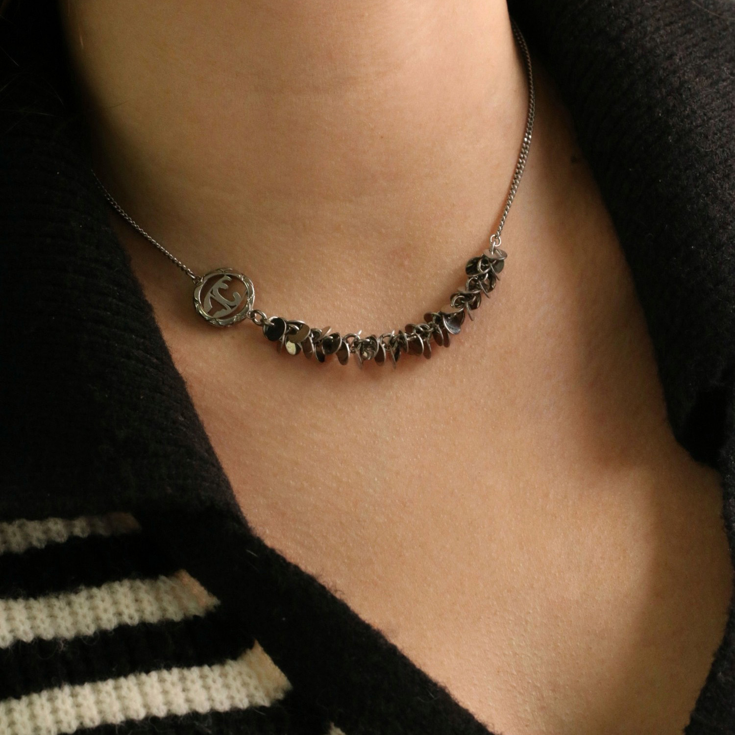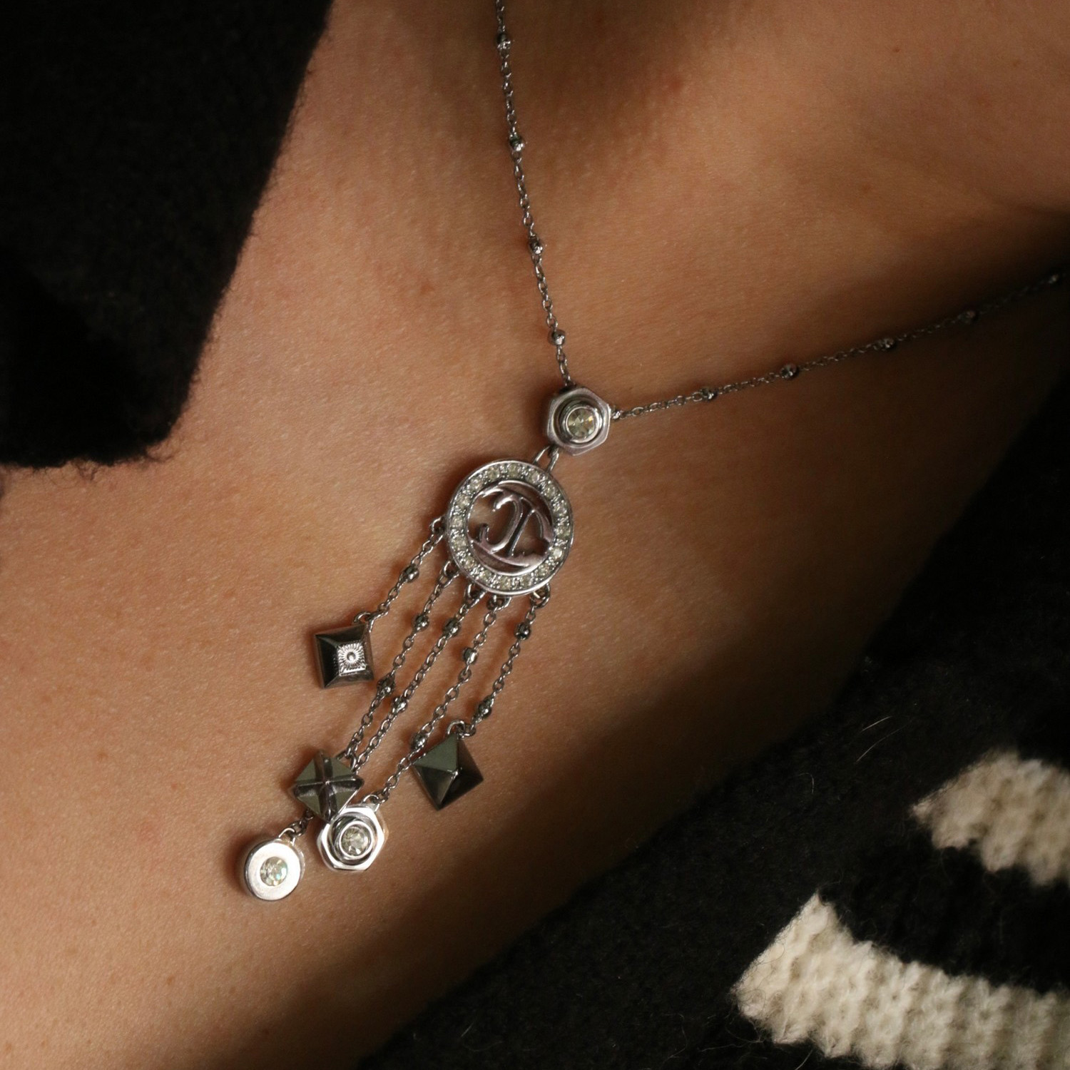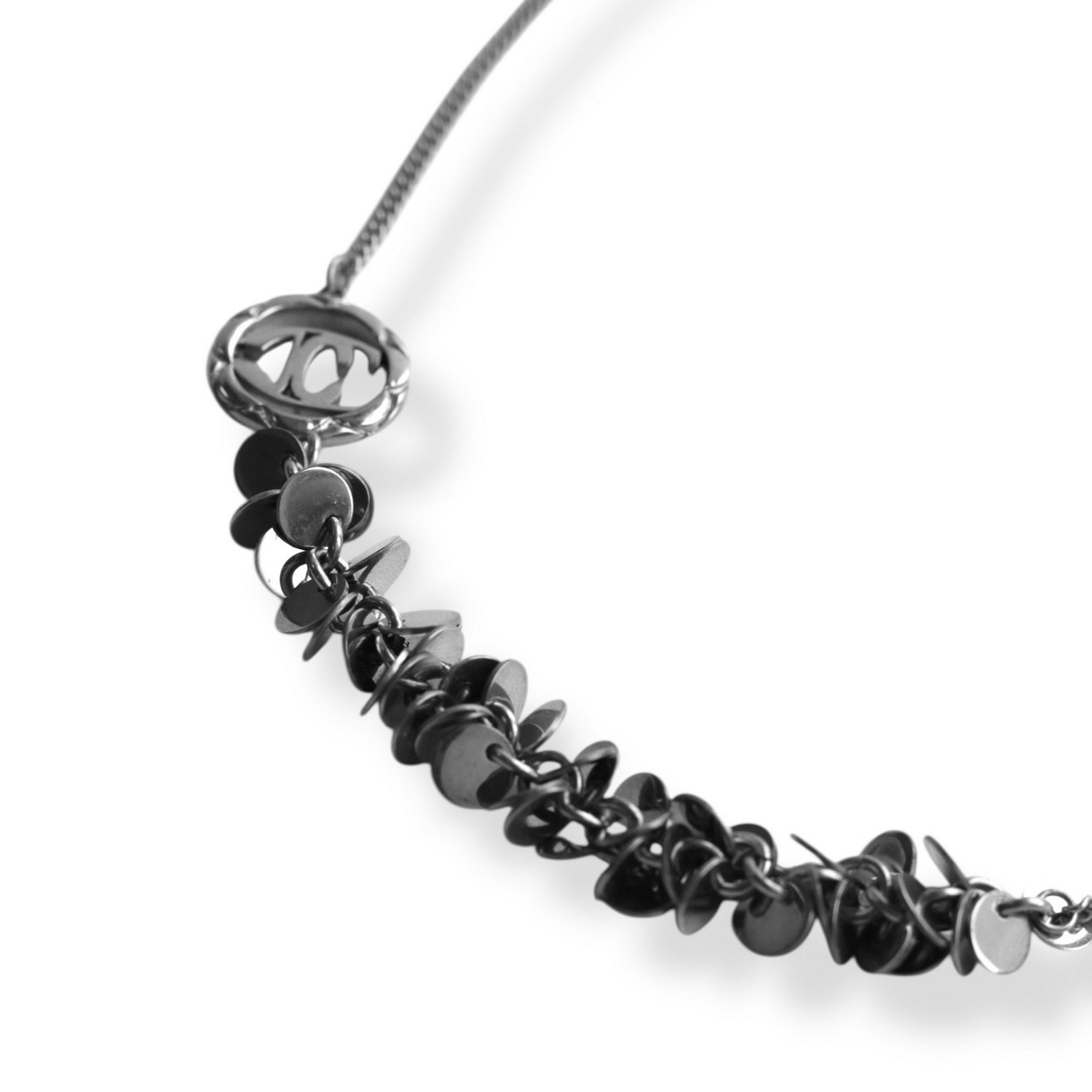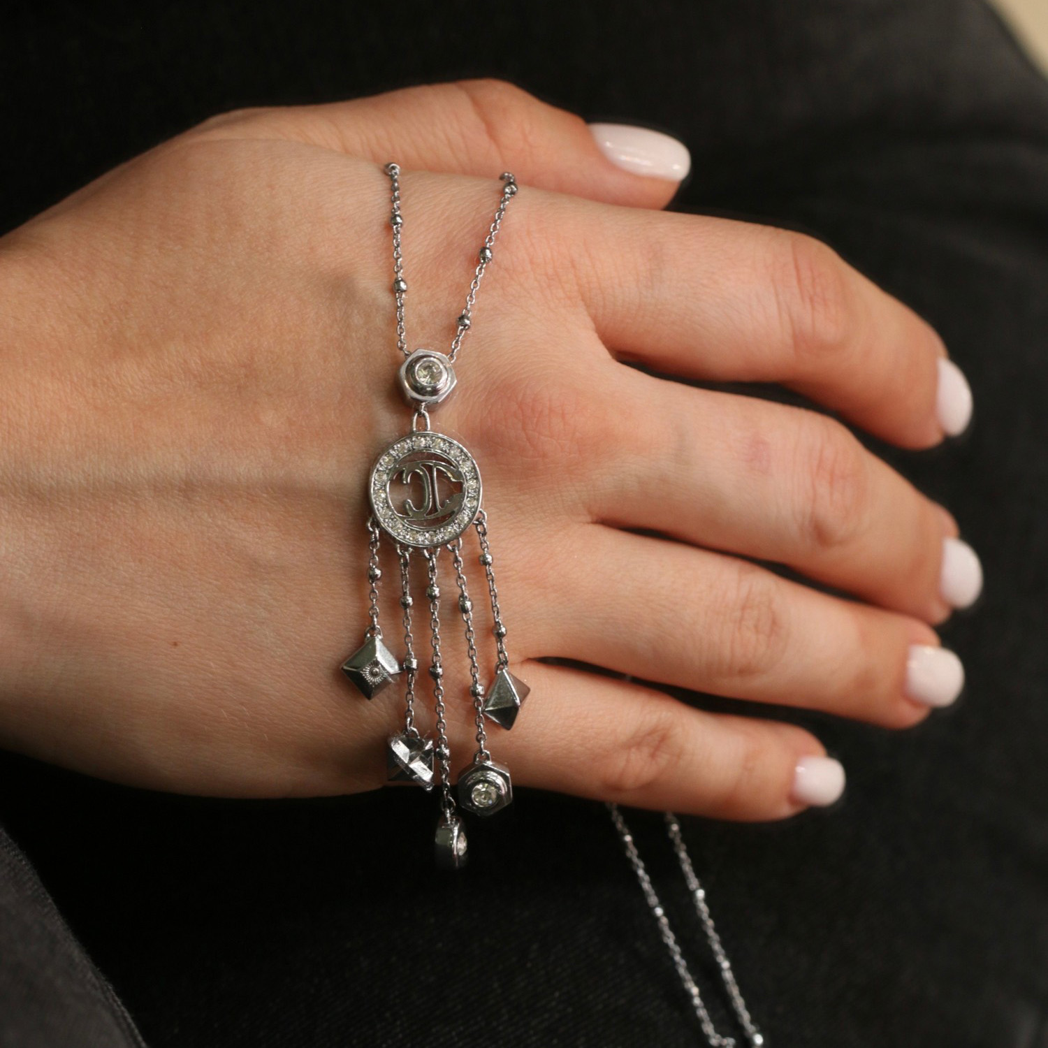 Колье Just Cavalli из стали покрытой родием, украшено цирконами. Длина регулируется от 41 до 45 см.
