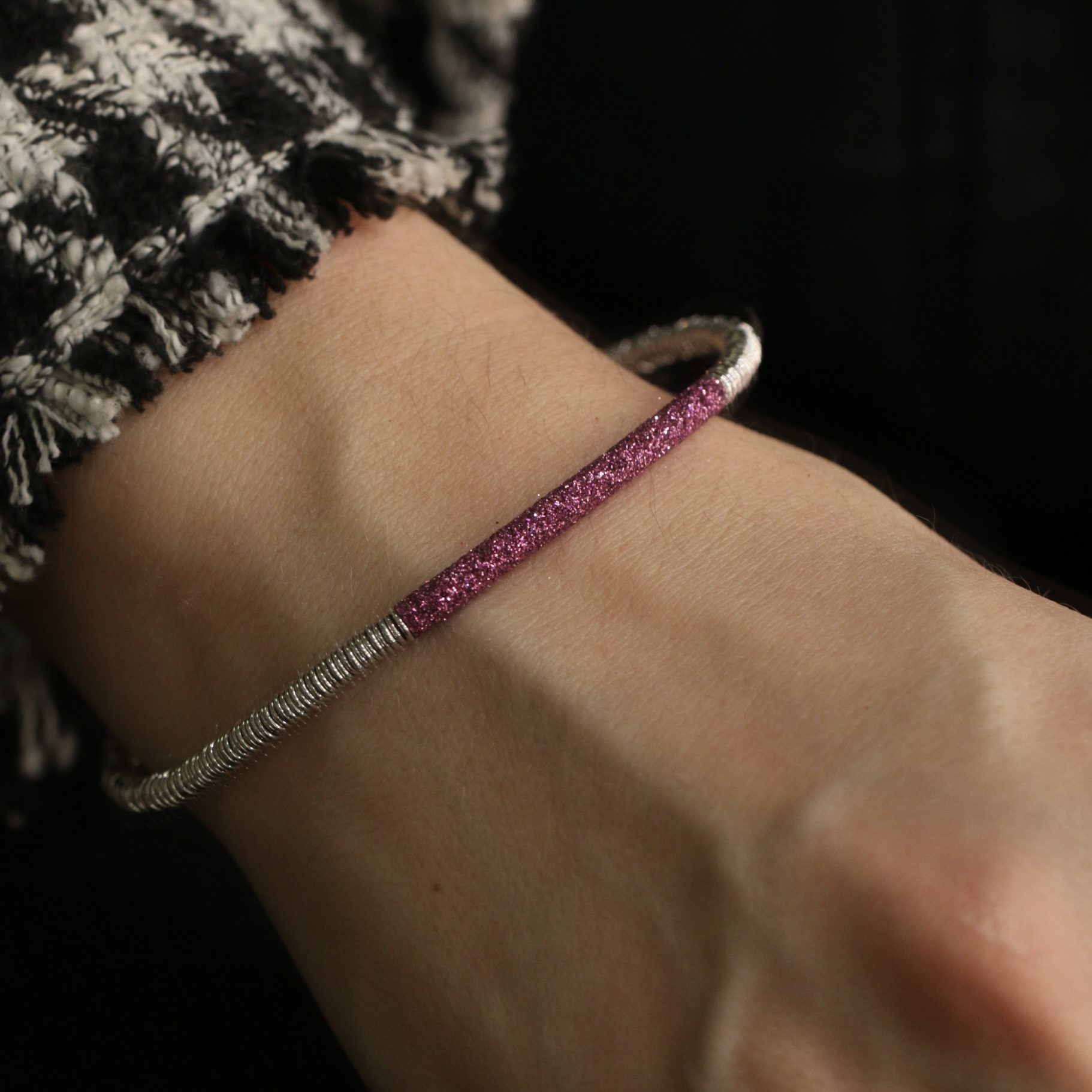 Браслет Pesavento из коллекции Polvere Di Sogni I Colori Del Mondo. Цвет: серебристый и фиолетовый. Изделие выполнено из родированного серебра 925 пробы, украшенного микрочастицами, полученными с помощью нанотехнологий из натуральных минеральных материалов. Фиолетовый цвет вдохновлен Провансом, краем лаванды. Браслет имеет эластичную пружину внутри для удобства ношения.