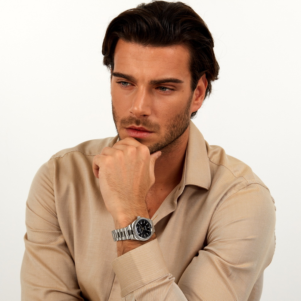 Часы с черным циферблатом и стальным браслетом элегантно сочетаются с деловыми костюмами, повседневной одеждой и классическими образами. Для практичных мужчин, ценящих механические часы с полным календарем и компактным размером. Универсальны для ежедневного ношения, работы и деловой жизни.